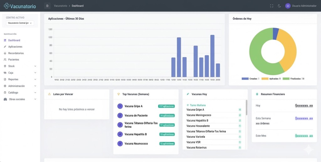 Zucovac puede usarse tanto en un vacunatorio pequeño como en una red con varias sedes. El sitio destaca soporte para múltiples centros, cambio de sede, transferencias de stock entre centros, roles granulares y reportes consolidados. También incluye liquidación automática de vacunadores, dashboards con KPIs en tiempo real y herramientas de seguimiento para próximas dosis y recordatorios. Eso lo convierte en una solución útil no solo para operar, sino también para gestionar crecimiento y control.